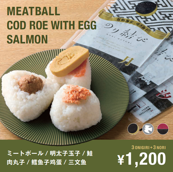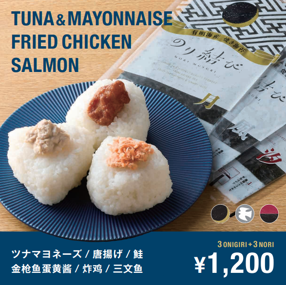 それぞれの具材に合った海苔を味わえるおむすびを是非お楽しみください。